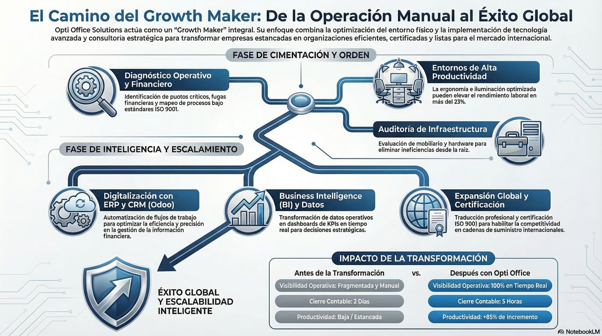 ¿Qué hacemos? Diseñamos e implementamos procesos sistematizados que transforman el caos operativo en eficiencia predecible.