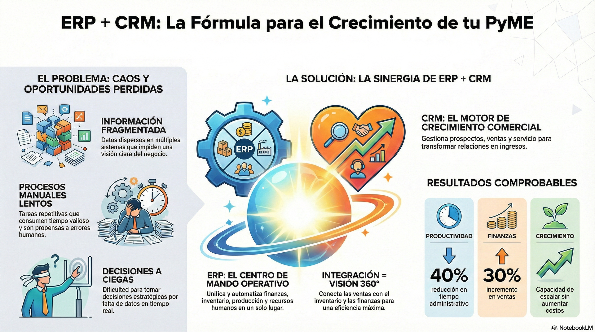Cada día que su empresa opera sin un sistema ERP y CRM integrado es un día de oportunidades perdidas, ineficiencias costosas y crecimiento limitado.
